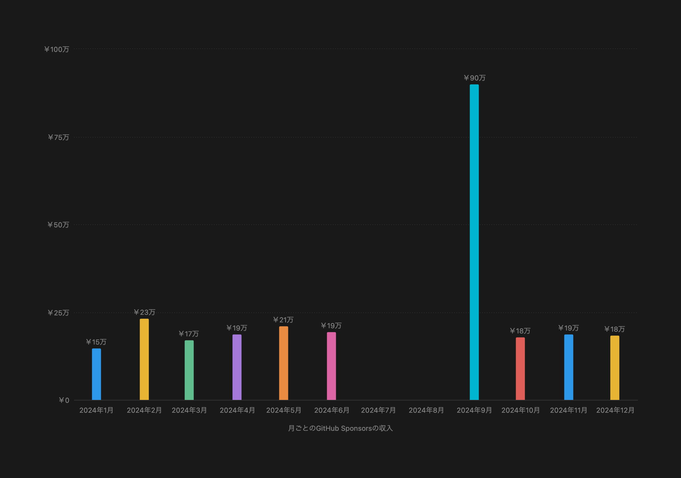 7月~8月がなくて 9月にまとまってるのは、GitHub Sponsors の設定を更新し忘れていて一時的に積んでいたのが原因です。